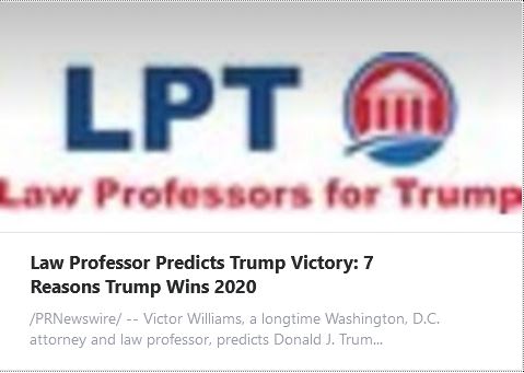 (Nov. 1, 2020) — WILLIAMSBURG, Va., Oct. 29, 2020 /PRNewswire/ — Victor Williams, a longtime Washington, D.C. attorney and law professor, predicts Donald J. Trump’s reelection. In 2016, Williams was one of the few to predict Trump’s first unexpected win. Prof. Williams states: “Trump should be graded on his historic first-term achievements for America.” Williams offers […]